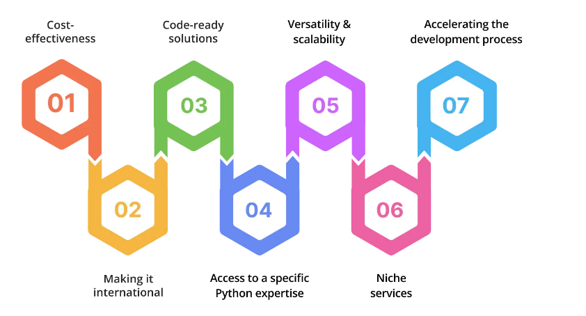 Versatility & scalability. Using third-party Python services can be both flexible and scalable if you have chosen the right company or developer. When appropriately selected, these services will quickly adapt to different business needs, and the team will be fully dedicated to your idea.