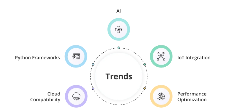 Python Frameworks — get reliable and efficient backend solutions with the growing popularity of Python frameworks (Django, Flask, FastAPI) for web application crafting.